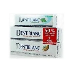 DENTIBLANC PASTA DENTAL BLANQUEADORA INTENSIVA DUPLO 2X100 ML es un dentrifico de tratamiento blanqueador natural que mantiene los dientes limpios, blancos y brillantes.